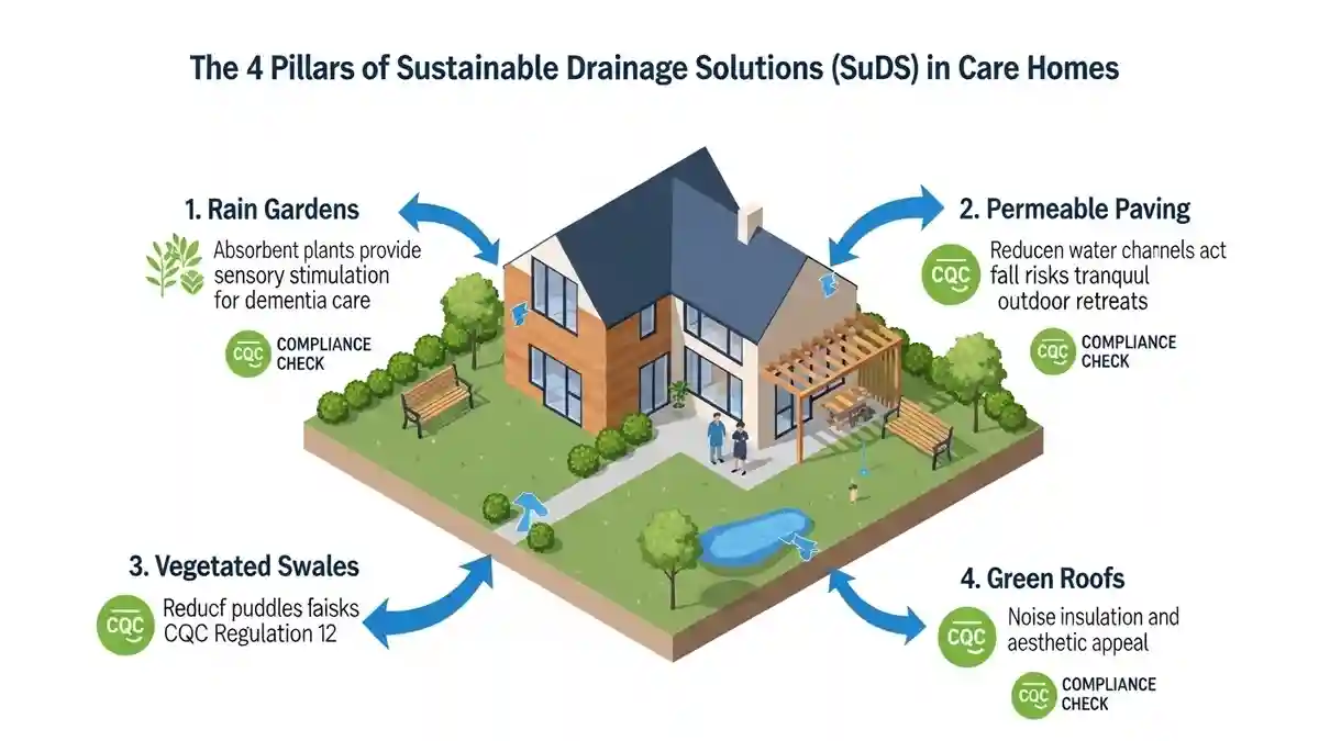 The future of sustainable drainage solutions CQC care home design is the integration of SuDS (Sustainable Drainage Systems). In Muswell Hill, Policy EN18 of the Local Plan encourages SuDS to manage surface water runoff, which often plagues the surrounding area.